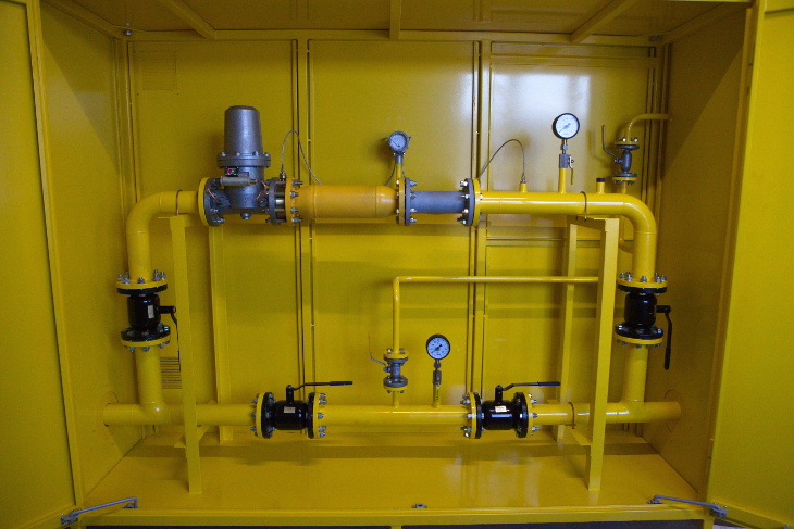 Стандартная комплектация ПУГ включает в себя защитный металлический шкаф (неутепленный и неотапливаемый), с размещенной в нем системой трубопроводов на которых смонтированы соответствующая газовая арматура, фильтрующее устройство, приборы контроля, измерения и учета.